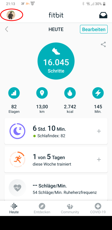 Klicken/tippen Sie links oben auf Ihr Profil-Icon: